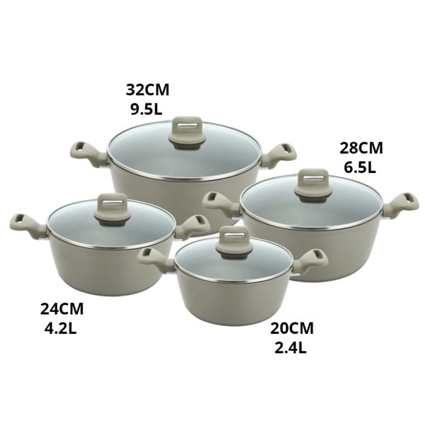 The Zoya Stockpot Set is practical and aesthetically pleasing, available in various vibrant colours to complement any kitchen decor. Equipped with an induction base, these pots are compatible with all standard stovetops. Furthermore, the PFOA-free coating ensures your meals remain free from harmful chemicals, promoting a healthy cooking environment. Elevate your culinary experiences with the Zoya Stockpot Set, and enjoy the perfect combination of durability, beauty, and convenience comes with the 4 different sizes